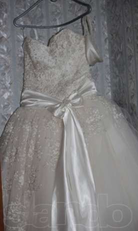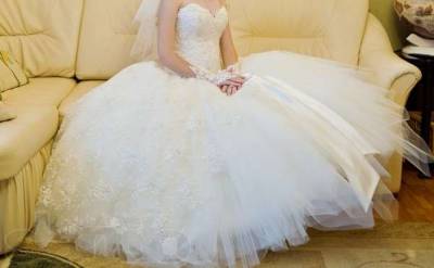 Продаю свадебное платье Айсель, коллекция 2012 года Love Story, в отличном состоянии без дефектов и загрязнений. Цвет кремовый (молочный), без желтизны, очень нежный. Силуэт Принцесса (А-Силуэт), корсет, есть небольшой шлейф. Материал: тафта, фатин. Само платье 40 размера, но в жизни я ношу вещи 42-44, за счёт корсета подойдёт и на 46 размер, но грудь не больше 3 размера. Смотрится очень дорого. Бант Вы можете себе сделать любого другого цвета. Платье очень удобное, отходила весь день как в ночной рубашке. Я в Москве, возможна отправка в другой город через курьерскую службу или почту. Возможен небольшой торг. Пишите на эл.почту milena-only@mail.ru