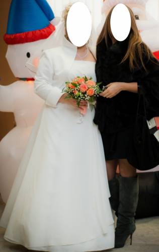 Свадебная шубка, белая, очень теплая (в день свадьбы был -21, и я только шубку сверху на платье одевала, не замерзла!). Покупала в салоне вместе с платьем, стоила 4000, отдаю за 2000. Торг уместен!